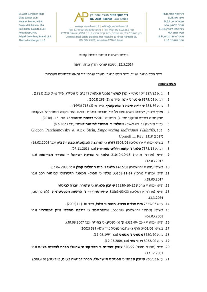 השתלמות נזיקין של הסיוע המשפטי, ת"א, 2.12.2024