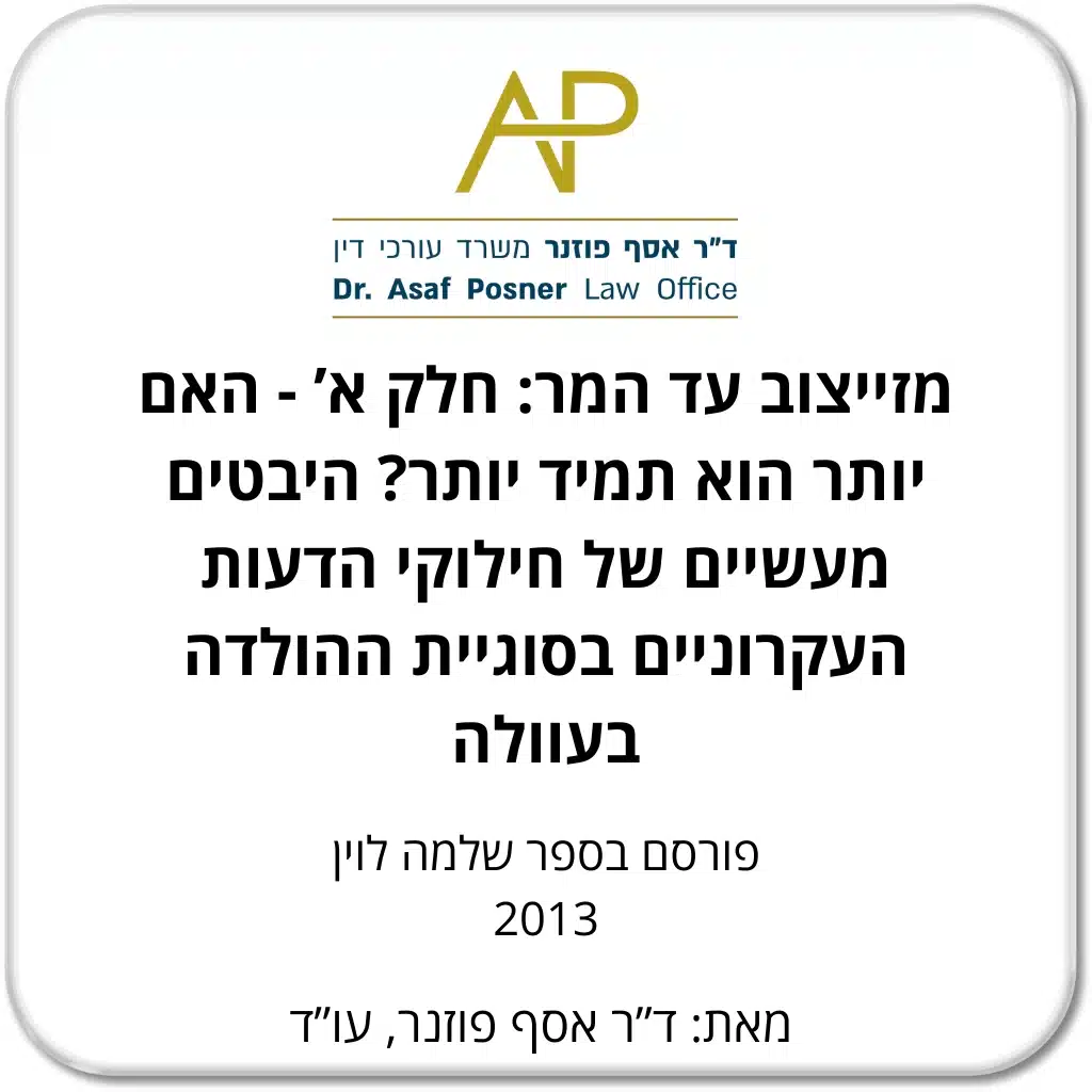 מזייצוב עד המר: חלק א’ – האם יותר הוא תמיד יותר? היבטים מעשיים של חילוקי הדעות העקרוניים בסוגיית ההולדה בעוולה ד"ר אסף פוזנר, עו"ד פורסם בספר שלמה לוין, 2013 Powered By EmbedPress