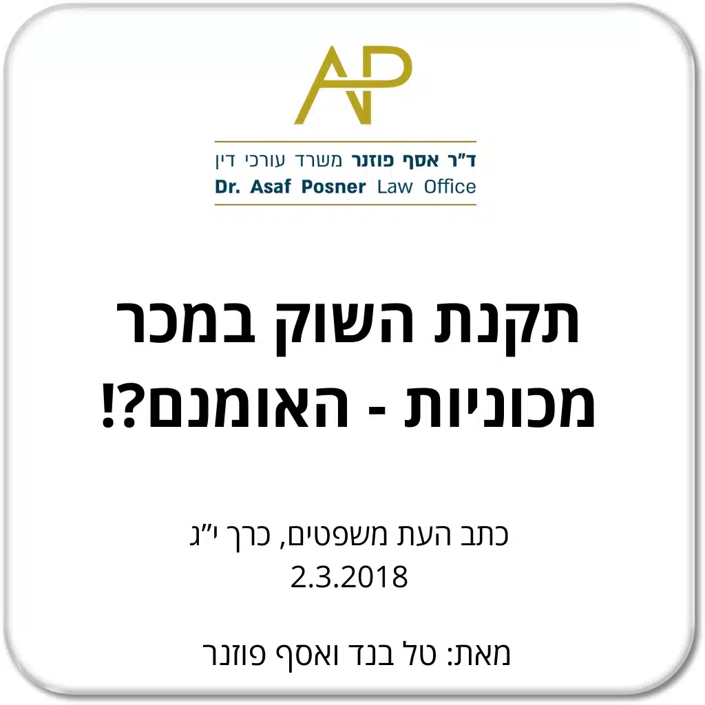תקנת השוק במכר מכוניות – האומנם?! עו"ד טל בנד ועו"ד ד"ר אסף פוזנר פורסם בכתב העת משפטים, כרך י”ג 2.3.2018 Powered By EmbedPress