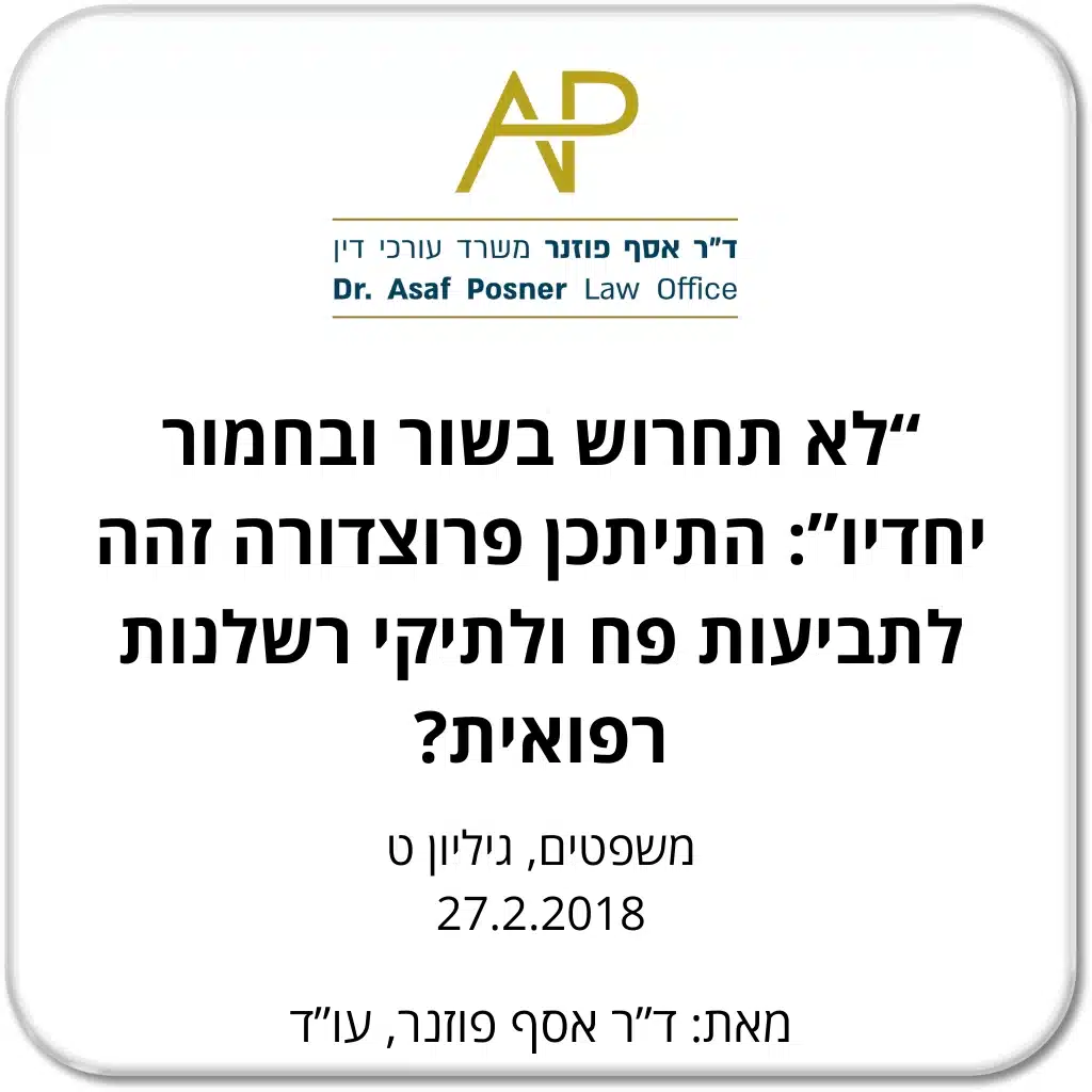 " לא תחרוש בשור ובחמור יחדיו": התיתכן פרוצדורה זהה לתביעות פח ולתיקי רשלנות רפואית? ד"ר אסף פוזנר, עו"ד פורסם בכתה העת משפטים, גיליון ט 27.2.2018 Powered By EmbedPress