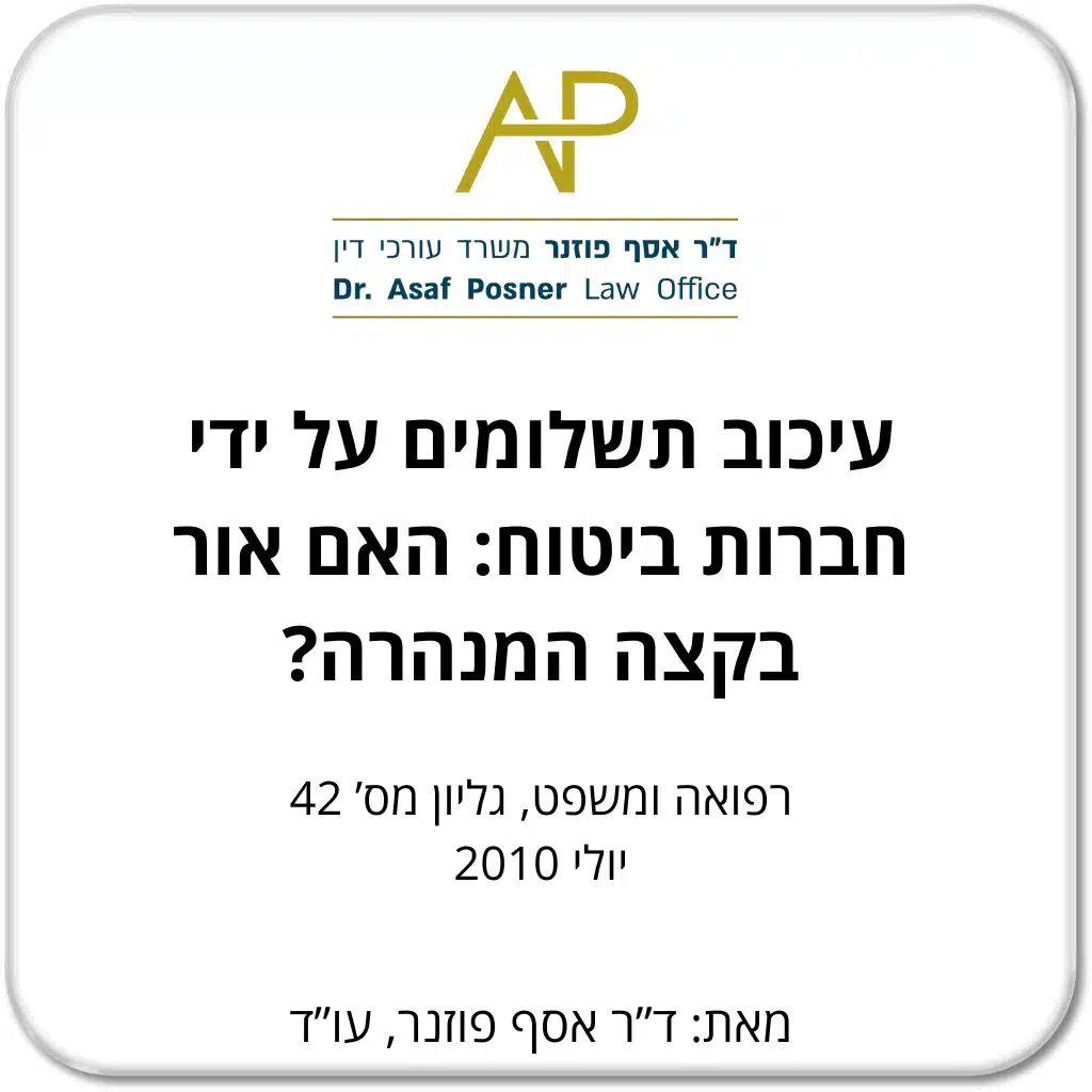 עיכוב תשלומים על ידי חברות ביטוח: האם אור בקצה המנהרה? ד"ר אסף פוזנר עו"ד פורסם בכתב העת רפואה ומשפט, גליון מס’ 42, יולי 2010 Powered By EmbedPress