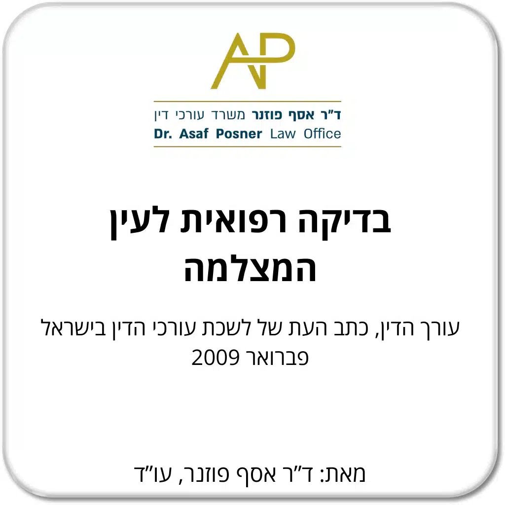 בדיקה רפואית לעין המצלמה ד"ר אסף פוזנר, עו"ד פורסם בעורך הדין, כתב העת של לשכת עורכי הדין בישראל, פברואר 2009 Powered By EmbedPress אולי יעניין אותך…