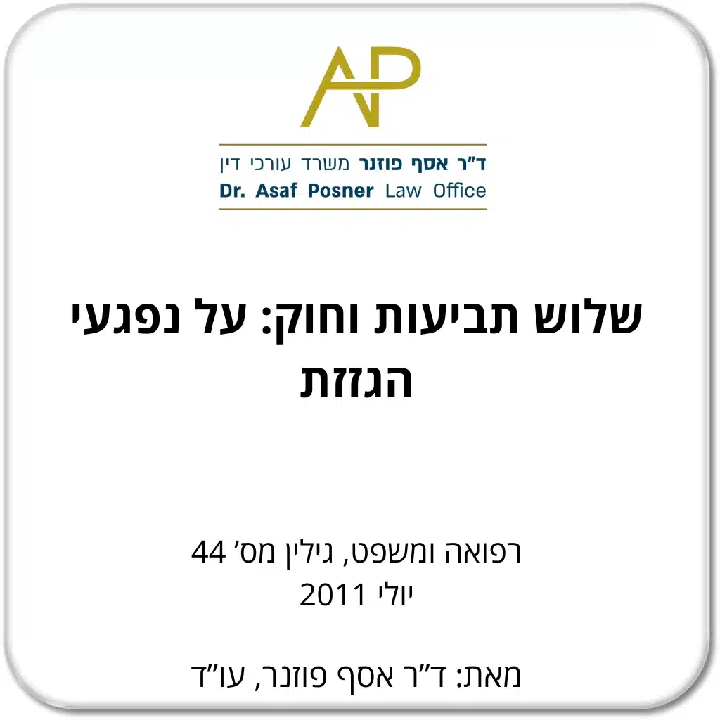 שלוש תביעות וחוק: על נפגעי הגזזת ד"ר אסף פוזנר, עו"ד פורסם בכתב העת רפואה ומשפט, גיליון מס’ 44 יולי 2011 Powered By EmbedPress
