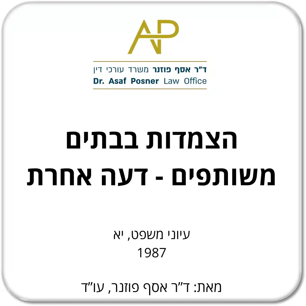 הצמדות בבתים משותפים – דעה אחרת ד"ר אסף פוזנר, עו"ד Powered By EmbedPress אולי יעניין אותך…