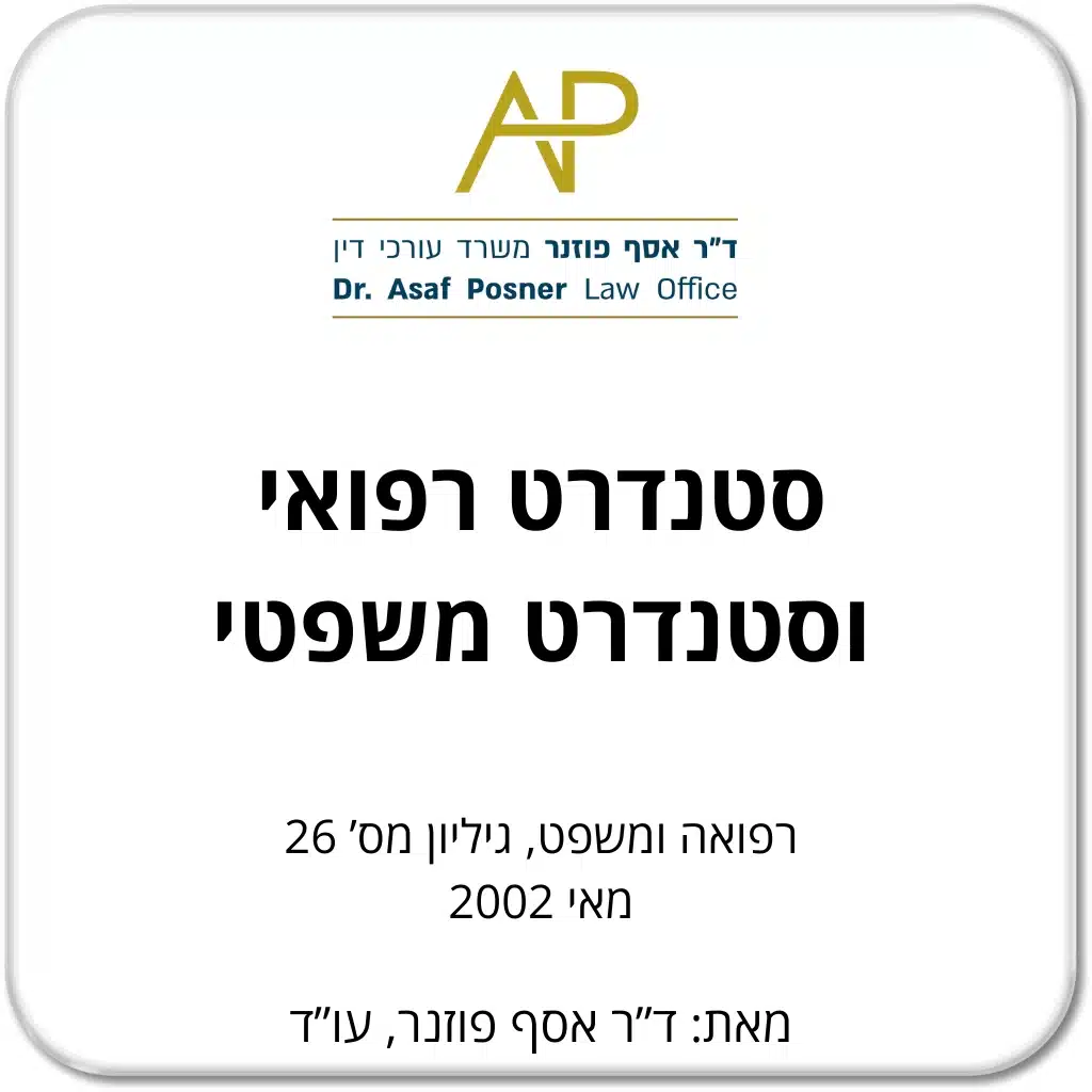 סטנדרט רפואי וסטנדרט משפטי ד"ר אסף פוזנר, עו"ד פורסם בכתב העת רפואה ומשפט, גיליון מס’ 26, מאי 2002 Powered By EmbedPress