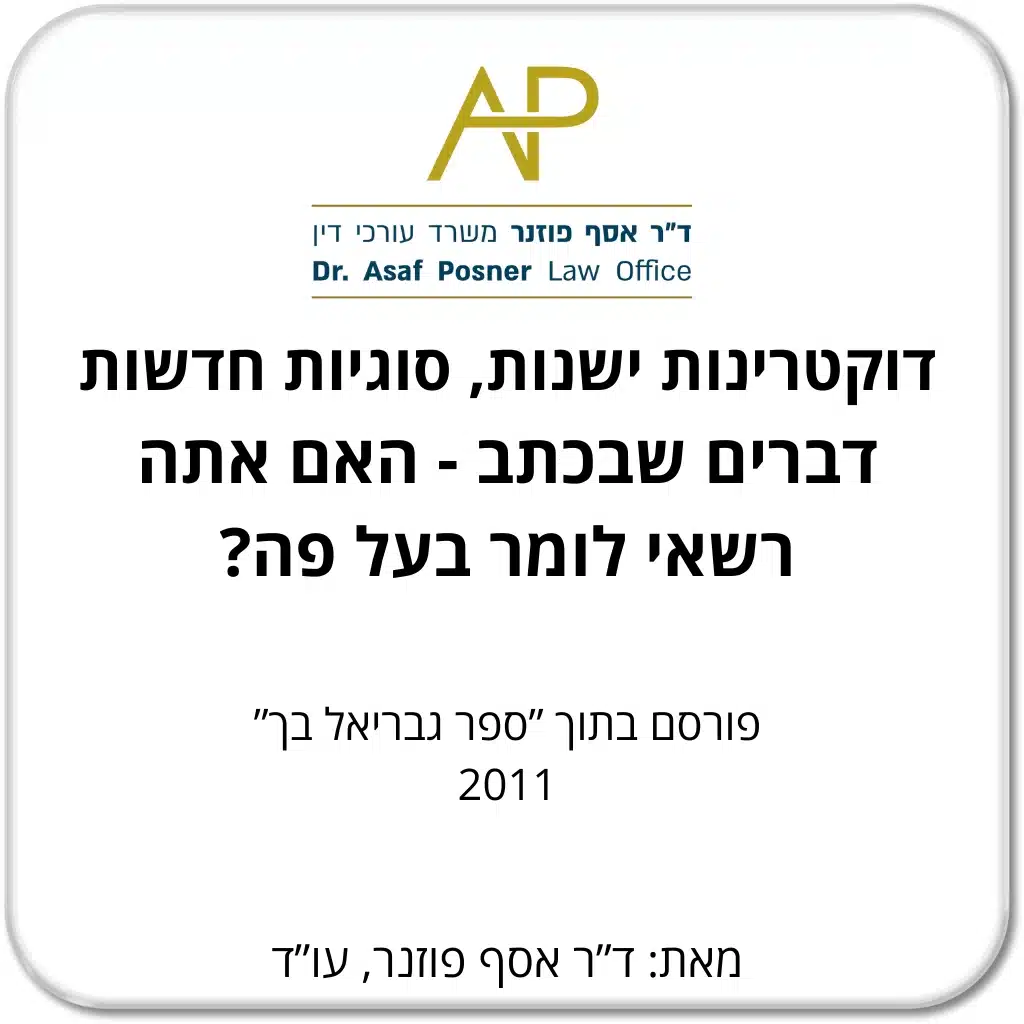 דוקטרינות ישנות, סוגיות חדשות דברים שבכתב – האם אתה רשאי לומר בעל פה? ד"ר אסף פוזנר, עו"ד פורסם בתוך ”ספר גבריאל בך” , 2011 Powered By EmbedPress אולי יעניין אותך…
