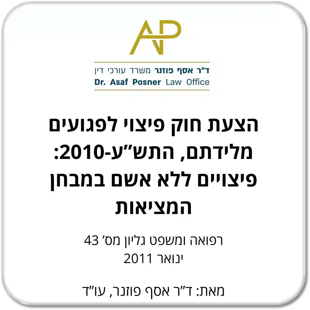 הצעת חוק פיצוי לפגועים מלידתם, התש"ע-2010 פיצויים ללא אשם במבחן המציאות ד"ר אסף פוזנר, עו"ד רפואה ומשפט, גיליון מס’ 43, ינואר 2011 Powered By EmbedPress